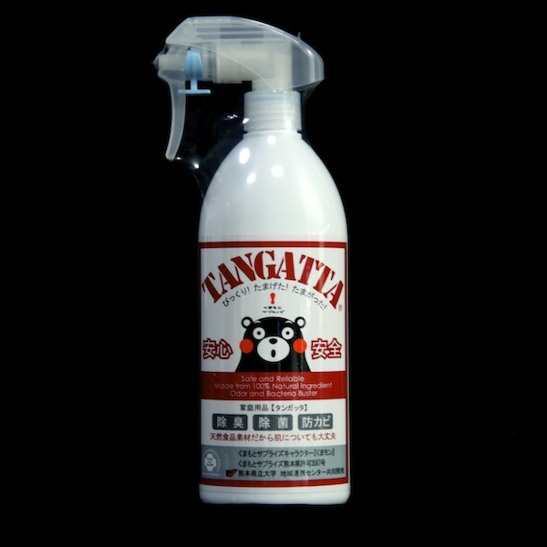 全て自然の物(発酵アルコール、有機酸オリゴマー、グレープフルーツ種子など)から抽出して作られた「TANGATTA」は人体に優しく、全く毒性のないものであり、臭いやバイ菌が気になる箇所、室内、台所、トイレ、病室、ペット、タバコ、生ゴミ、汚物などに効果があるようだ。