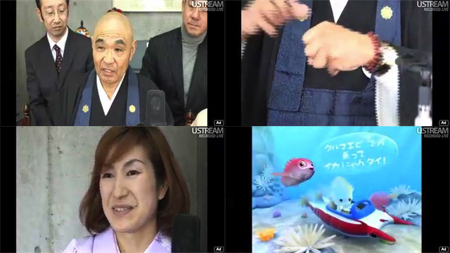 リアルタイム放送のUstream初体験で緊張感も無く、天草の観光情報から東司(とうす)の話まで盛り上がった。特に宿泊予約を1週間間違ったきらら停若女将、鉄板焼のニンニクのスライスに魅せられたギター和尚、2キロの真鯛を頭から撮影してTwitterにアップした岬亭女将など・・・若干脱線気味のチカマロトークに翻弄された様子。