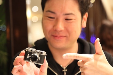 初めてミノックスを手にしたオオチャコ(D&L TVパーソナリティ)。本当に写るのか疑っていたが、ちゃんと明るい所では写るはずである。