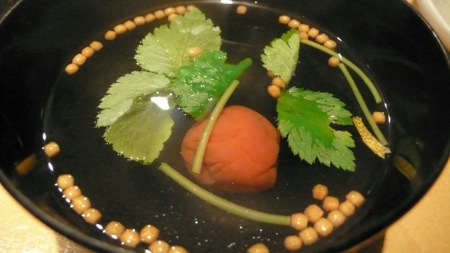 そして、〆に出て来る梅干しのお吸い物。まあ、これまた脂の乗った大トロやヒラメの縁側、蛤など・・・すべての美食の終わりを告げる吸い物である。たまに、赤出しにネギ多めで頂く事もあるが、今日の吸い物は日頃の疲れと体に溜まった毒素を溶かしてしまいそうな爽やかさがあった。