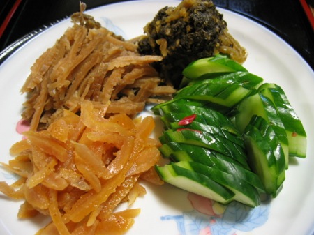 おお、そろそろ御飯だな・・・。色鮮やかな御漬物。・・・最高だ!