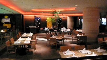 広々としたお洒落な空間に、沢山の料理がサーブされている。グランドハイアット系列では、以前バンコックと上海(88階建て高層ホテル)で、同じ様なバイキングを食した事があるが、このアロマーズがその中ではピカイチであった。