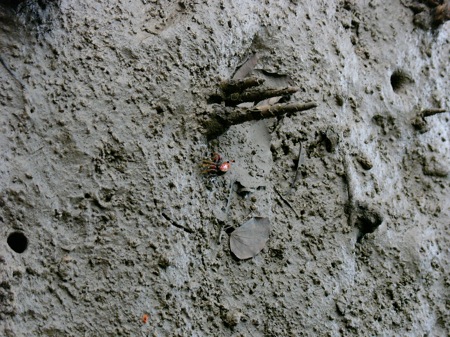 ふと海辺の地面を見ると、赤くて小さなシオマネキが居るではないか。熊本天草のハクセンシオマネキと違い、お洒落な赤いちゃんちゃんこ?・・・還暦ですか、って違いますよね。^^