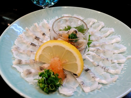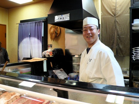 写真上は、はにかみ屋だが、真剣な時は凄まじいオーラを発する店主。・・・彼の包丁捌きやアイデアは、かなり突出しているのだ。