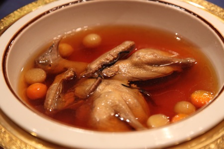 ↓仔鳩の老酒蒸しスープ(冬虫夏草添え)