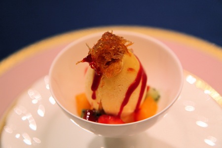 極上のマンゴーアイスに、更に超珍味の紅海ツバメの巣(血燕)が添えられている。食感といい、本日の特別料理の〆として最高の演出であった。
