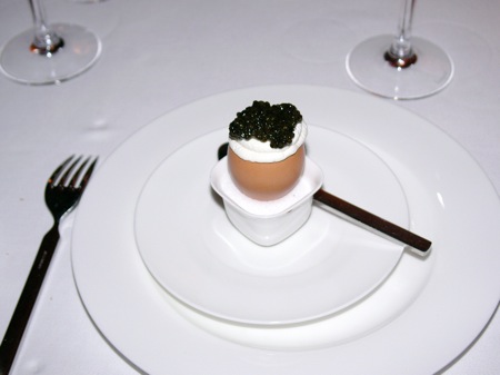 キャビアが大きく盛ってある。珍味と言われるキャビアだが、この艶、この粒・・・申し分ない。