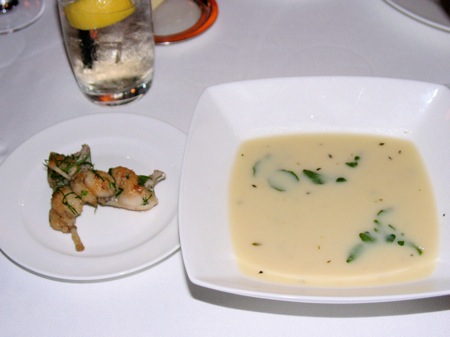 そろそろ「蛙」が来るかなと待っていると、何とスープの横に可愛い「蛙」の足(下写真)がサーブされた。小さな鶏を食べている感じの食感。味はあっさりで全く癖がなかった。