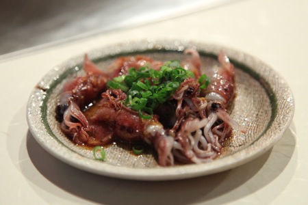 さっと出されたサラダ、牛刺し、ホタルイカと・・・店主の動きに合わせて、試食する間もなくシャッターを押しまくって行った。