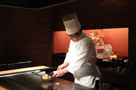 今回担当してくれたのは、同レストランの上野雅人シェフ(日本鉄板焼協会会員)。シャイだがお人柄もフットワークも良く、食事中の会話を楽しませてくれる人物だ。