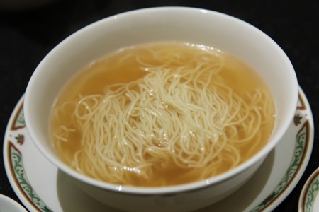 ホテルオークラ福岡オリジナル麺で、細めだが腰がある。実に美味しい逸品。