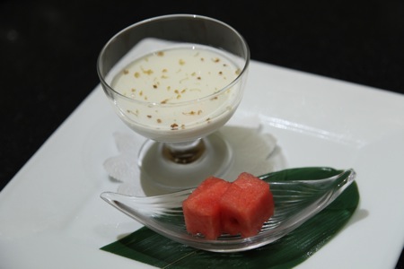 ▼特製杏仁豆腐 キンモクセイのソース/熊本産すいか