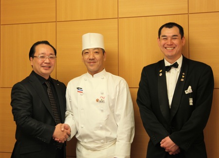 ◎写真中央が樋場正人料理長・写真右がヘッドウェイターの麻生亮氏