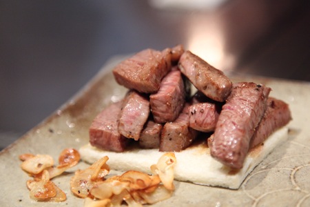お味のほどは・・・なるほど、黒毛は肉質も柔らかく、さしの甘さが滲み出て口の中に広がって行く感じだ。塩と胡椒だけで十分である。150グラムを焼いてもらったが、数分もかからずペロリと食べてしまった。
