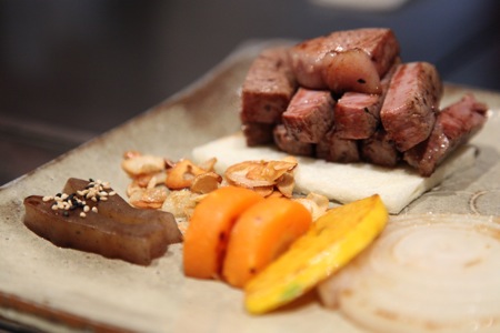 赤毛のお味のほどは・・・思ったよりも肉質の柔らかさと、その肉自体の味がすこぶる良いではないか。これはこれは、失礼致した。どちらかと言えば、黒毛を好んで居た筆者だが、今回の赤毛を食べてみて少々考えが変ってしまった次第。