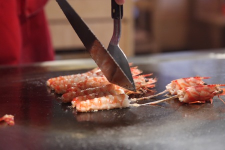 今回ご紹介したいのは、同店の富澤シェフが車エビの背わたをいとも簡単に鉄板でコテだけで抜く瞬間映像。