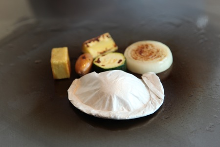 3)唐津産あわび 蒸籠(せいろ)蒸しと香味野菜