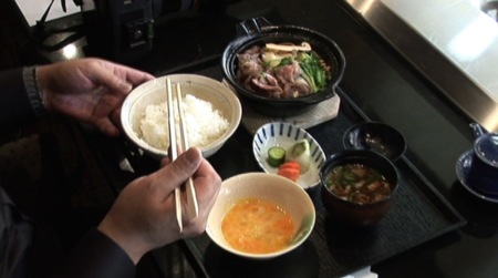 3)佐賀牛のすき焼き 金葉亭風 糸島の天上卵と共に