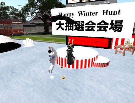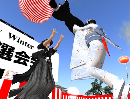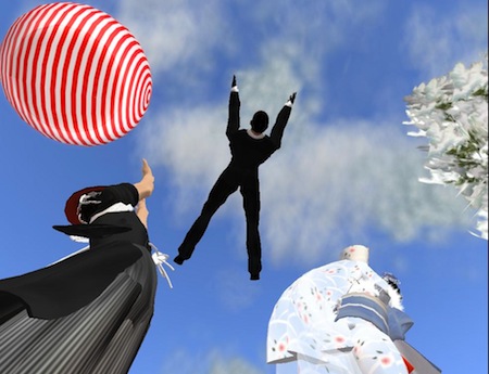 仮想現実世界セカンドライフ「熊本ジャパン/KUMAMOTO JAPAN」第2のSIMで胴上げの練習。