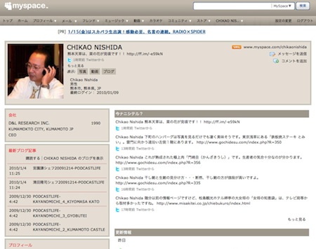 ◎筆者のMyspaceのスクリーンショット