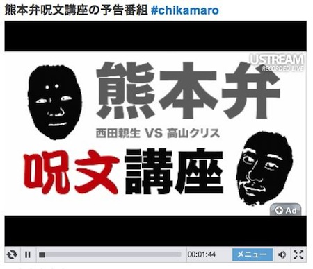 いよいよチカマロ&クリスの「熊本弁呪文講座」が明日午後8時からスタートする。その予告を以下のURLにて45分ほど放映しているので、是非ご覧いたければと思う。
