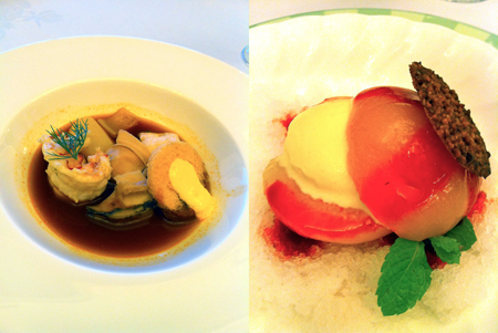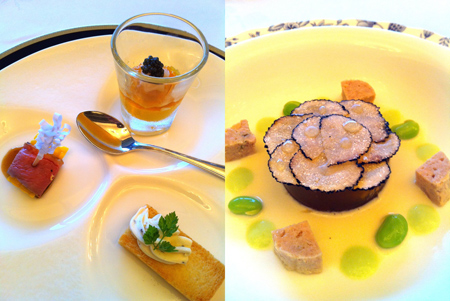 さてさて、会議後の食事は・・・6月に新しくなったメニューの数々。メインディッシュは「スペイン産のウサギのもも肉とフォアグラ トリュフ添え」。松田料理長が最近凝っている「低温調理」で絶妙に仕上げた逸品だ。