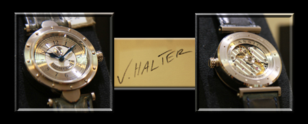 ソフィ・タカヤナギ(熊本市下通アーケード2番街)に、何と「VIANNY HALTER(サイン入り)」の逸品を見つけた。・・・時計職人の匠の業が随所に見え隠れする、逸品中の逸品だ。