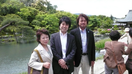 写真2枚は、ロゼッタストーン・メディア研究会の熊本ジャパン参入企業のメンバー。天龍寺(京都)にて撮影したもの。