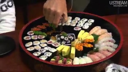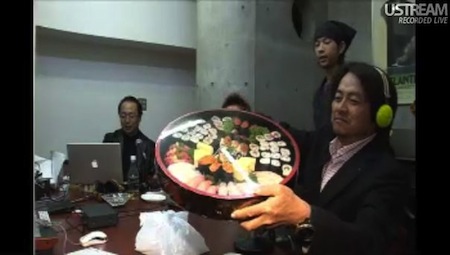 更に、番組後に腹を空かしたパーソナリティたち。深夜の反省会を兼ねての夜食会へとライブ放送は続く。ロゼッタストーン準会員である「寿し処 稲穂」に出前を注文。・・・特上、細巻きをあっという間に平らげてしまった三人。