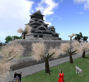 写真のように私も久しぶりに加藤清正公の姿をして、「いちょう」と一緒にお堀端を眺めているところです。水のせせらぎ、カルガモ親子の鳴き声、ラーメン屋台と・・・静かな環境で心も洗われます。今日は、都会の喧噪から逃れて、是非熊本ジャパンにちょっと早めの花見は如何でしょうか?