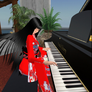 突然だったが、熊本ジャパン専属モデルとして26番目に登録された「アヤさん」に、モデルとしてピアノを弾いてもらった。「MOONLIGHT(月光)」を艶やかな着物姿で奏でるのも、なかなか絵になるものだ。