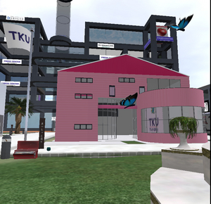 昨日、RLで会食がありオフィスに戻ったのが深夜であった。数人のキャンパーと話を終え噴水傍を見回っていると、何と可愛らしいピンク色の新築オフィスが目の前にあるではないか!@@;;