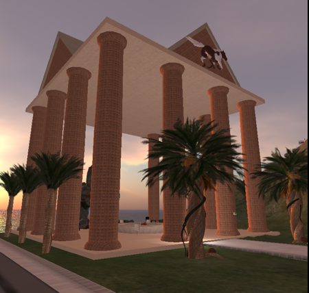 毎日、熊本ジャパンの正規メンバーが集う「積善余慶塾」。今回、気分一新の為に以前のトゥリー・ハウスを撤去して、ギリシャ風のエンタシスの柱からなる開放的な建物になった。