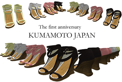熊本ジャパンのフリービーショップ「どぎゃん屋」に新作のフリーの靴がゾロリと並んだ。