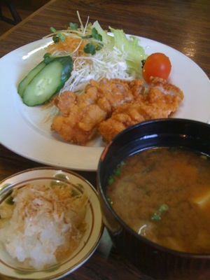 筆者はたいてい骨抜きの唐揚げ定食を頼み、御飯はもつ丼、そして水餃子かコロッケを食べる。