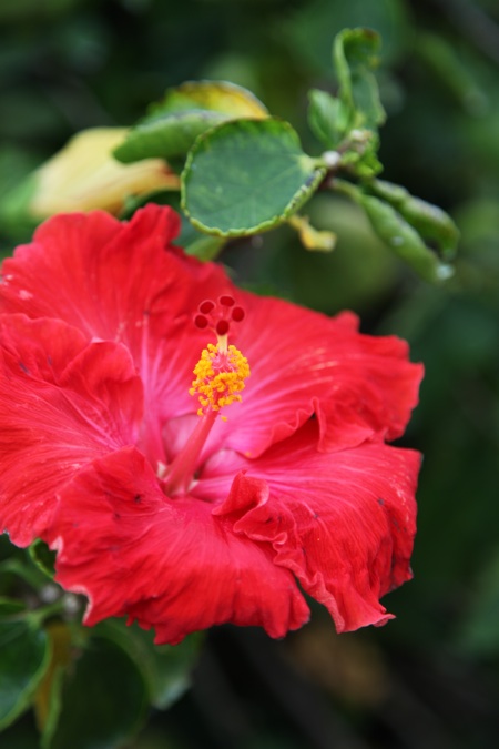 帰り際にさよならのポーズのハイビスカスたち。沖縄では墓参りにお花を調達出来ない時は、そこらに咲いているハイビスカスをを供えるんだと、個人タクシーのドライバーが言っていた。・・・私たちが見慣れている彼岸花みたいなものであろうか!?