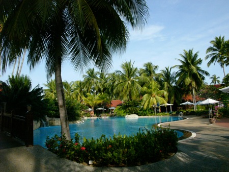 ホテル内にあるプールが鮮やかに見える。流石に空気は澄んでおり、タイ国境に近いランカウィ島は天国に二番目に近い島みたいな・・・そんな感じがした。