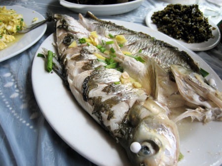 次から次に運ばれてくる料理。・・・これはご覧の通り、魚料理。目玉がちょいと飛び出てまんねん!と関西弁風で言いたくなるくらい・・・元々川魚料理が苦手な筆者だったが・・・。