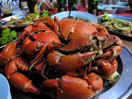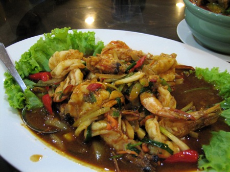出たぞ出たぞ!・・・豪快な海老料理。スパイシーで、空腹の胃に染みる様な料理だ。これは観光の途中で立ち寄った小さなレストランで食した物だ。