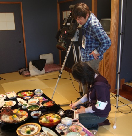 本日は同ホテルの「七色玉手箱」をテレビ局も取材に来ていた。カメラを向けるカメラマン、ディレクターの眼は真剣そのものだ。料理を撮影するには、特にビデオの場合は息を殺して撮影に臨まねばならない。筆者も何度かビデオを遊び半分でパーンさせたことがあったのだが、プールで潜水後の息を吐くくらいの辛さがあった。
