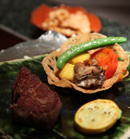 まだまだ霜降り重視の鉄板焼やステーキの世界だが、先々は「かんざき牛」のような赤身の旨味を楽しむ方向に変わるかも知れないと、ふと思った筆者であった。