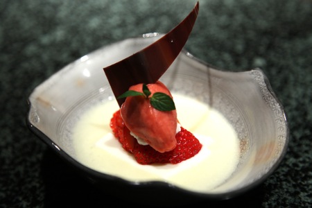 細やかな霜降りの肉を天城産の本山葵と一緒に食すと、これは筆舌に尽くしがたい絶妙な味わいとなる。今まで食べた事のない大変上品な肉質であった。