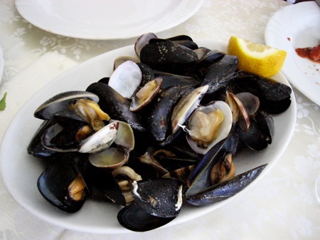 1人前のムール貝がこんなに沢山お皿の上に乗っている。今日は4人だから良い様なものの、1人で行ったらさあ大変ってところだろうか。