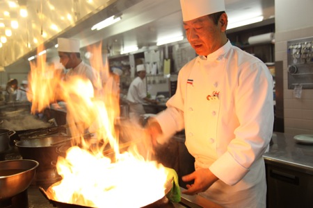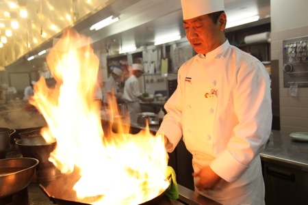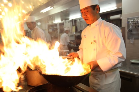 ホテルオークラ福岡・広東料理「桃花林」の樋場正人料理長を訪ねた。初めて足を踏み入れた同レストラン厨房に、その樋場料理長が鉄鍋を振っていた。