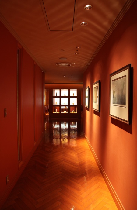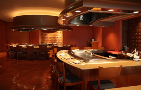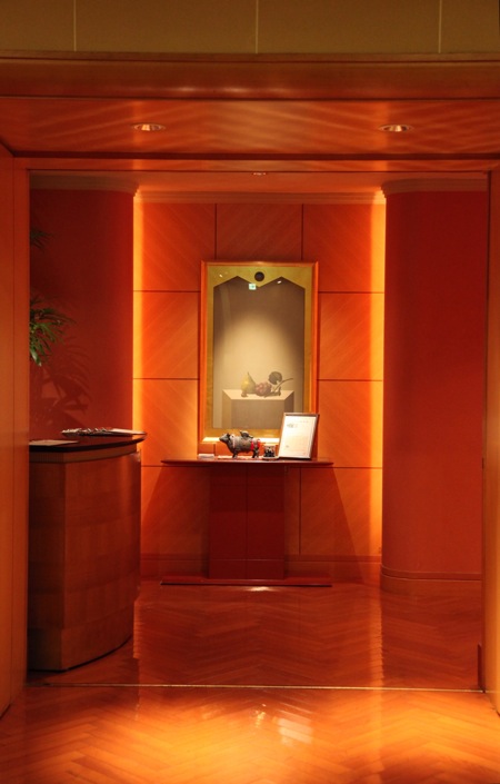 日本鉄板焼協会会員でもあるホテルオークラ福岡「さざんか」。玄関から入り、通路を奥に進むとゴージャスだが、落ちつく空間が広がって来る。
