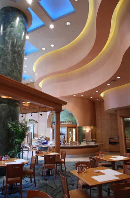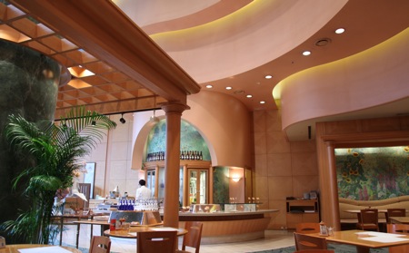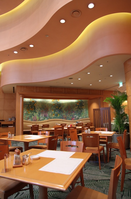 ホテルのカフェの空間は、そのホテルにより様々である。ここはホテルオークラ福岡のカフェテラス。・・・ヘンデル&グレーテルや3Dゲーム・ネバーフッドのような空間で、お菓子の中に包まれたような心地よい気分になる。特に、女性客には人気のカフェではなかろうか。