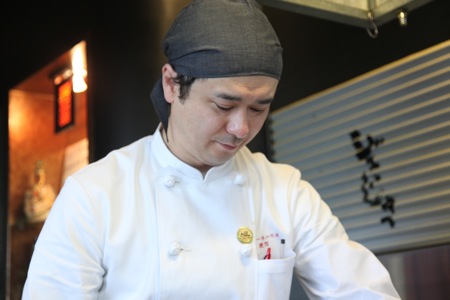◎淀川司朗シェフ(胸元は日本鉄板焼協会公認準師範のバッジ)