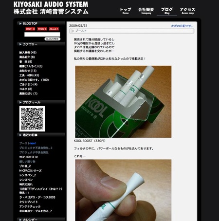 当社は「D&Lメディア研究会」というメディア融合の勉強会を主宰し、県内テレビ局民放4局及び広告代理店も参加しているのだが、そのメンバーにもすこぶる人気のブログとなっているのが「清崎音響システム」だ。
