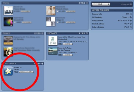 ◎iTunesにおいて「セカンドライフ」で検索した結果画面