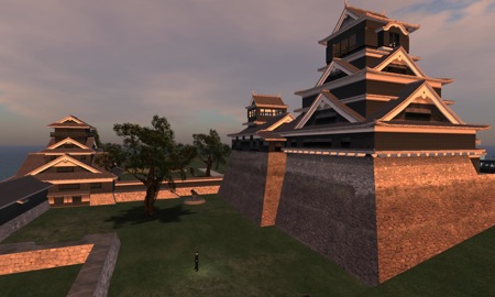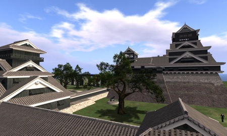 3枚の写真は熊本城の大天守、小天守、そして宇土櫓を実寸大で再現したものだ。加藤清正公が築城して今年が401年。籠城戦を想定して造られた実戦型の熊本城。その威風堂々とした姿が熊本ジャパン(SecondLife)の中で見る事ができるのだ。
